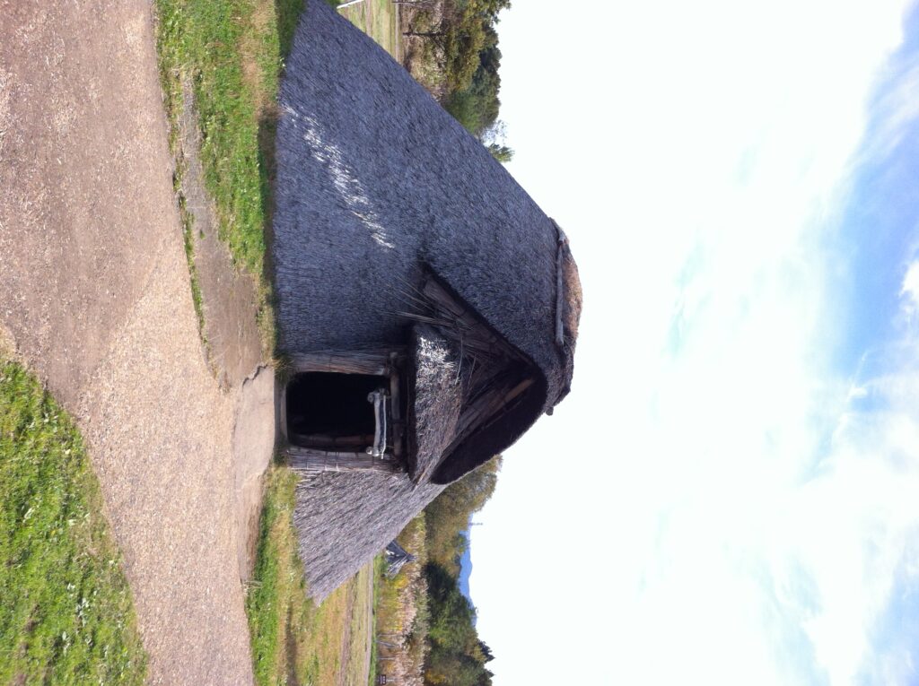 日本1周、青森県の三内丸山遺跡内にて竪穴住居を撮影。